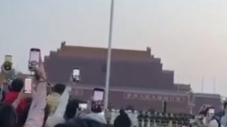 韓国経済 【1989.06.04】中国共産党が天安門広場の警戒を強める中、男性1人が国旗掲揚式に乱入。