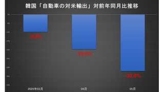 トピック 韓国・自動車の米国輸出がどんどん減る。-9.8% ⇒ -32%