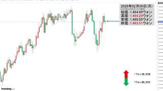 2026年02月10日(火)の韓国株式市場が締まりました。15:32現在、KOSPI(韓国総合株価指数)のチャートは以下のようになっています(チャートは『Investing.com』より引用)。陰線となりました。KOSPIは「5,301」で...