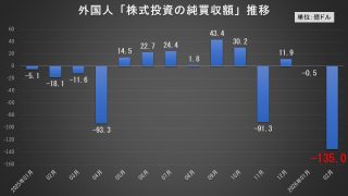 トピック 外国人投資家、韓国株式市場から異常な速度で撤退。02月は「-135億ドル」