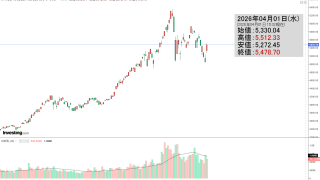 2026年04月01日(水)の韓国株式市場が締まりました。15:32現在、KOSPI(韓国総合株価指数)のチャートは以下のようになっています(チャートは『Investing.com』より引用)。陽線が終わりました。KOSPIは「5,478」...