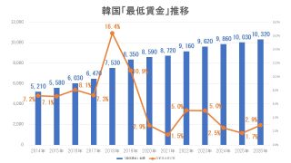 2025年07月10日、韓国では2026年度の最低賃金が「1万320ウォン」と決定しました。↑2014~2026年の韓国の最低賃金の推移。オレンジ色の線は対前年比の増減(%)です。中国にも最低賃金があるのをご存じでしょうか。2025年07月...