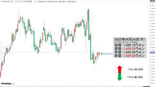 2025年12月18日(木)の市場が開きました。10:00現在、ドルウォンのチャートは以下のようになっています(チャートは『Investing.com』より引用)。これからローソク足の調整が入るかもしれませんが、前日はローソク足の上がずいぶ...