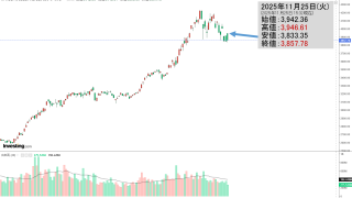 2025年11月28日(金)の韓国株式市場が締まりました。15:45現在、KOSPI(韓国総合株価指数)のチャートは以下のようになっています(チャートは『Investing.com』より引用)。残念ながら下げて陰線で締まりました。KOSPI...