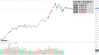 2025年11月27日(木)の韓国株式市場が開きました。10:03現在、KOSPI(韓国総合株価指数)のチャートは以下のようになっています(チャートは『Investing.com』より引用)。ギャップアップして始まり、4,000ラインを回復...