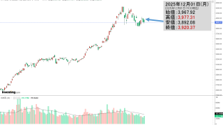 「韓国株式市場」12月01日(月)初動・KOSPI「3,905」上げ始まりで陰線。