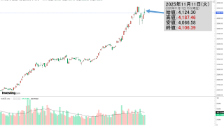 2025年11月11日(火)の韓国株式市場が締まりました。15:32現在、KOSPI(韓国総合株価指数)のチャートは以下のようになっています(チャートは『Investing.com』より引用)。ローソク足の上が削られてコマ足になってしまいま...