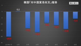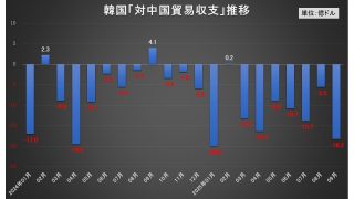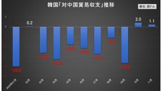 トピック 韓国11月貿易収支:97.3億ドル。対中国は1.1億ドルなんとか貿易黒字。