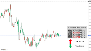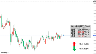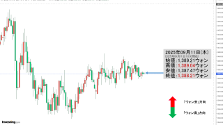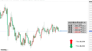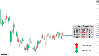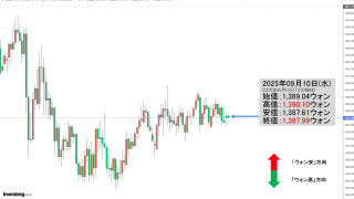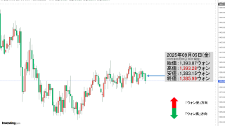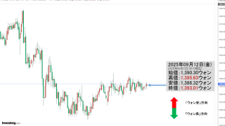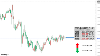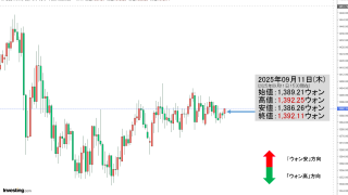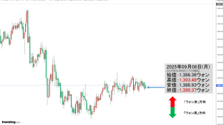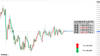 トピック 「ドルウォン」09月15日(月)初動・「1,391ウォン」レンジ。